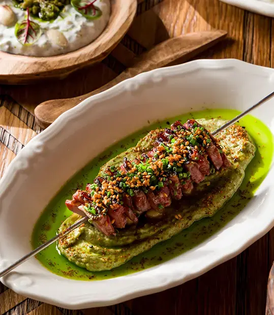 Вдохновлённый гастрономическими традициями Северного Кавказа и Ближнего Востока, ресторан переосмыслил классические рецепты и создал изысканный кулинарный опыт, объединяя традиции и нетривиальные вкусовые сочетания.
